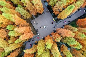 (251130) -- BEIJING, 30 noviembre, 2025 (Xinhua) -- Vista aérea tomada con un dron el 30 de noviembre de 2025 de personas divirtiéndose en un parque del humedal, en el distrito de Bozhou de la ciudad de Zunyi, en la provincia de Guizhou, en el suroeste de China. (Xinhua/Li Renjun) (rtg) (da)