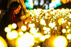 (251128) -- BOGOTA, 28 noviembre, 2025 (Xinhua) -- Imagen del 27 de noviembre de 2025 de una mujer tomando una fotografía durante la apertura del festival de luces interactivo Brilla Sueños, en Bogotá, capital de Colombia. El festival de luces interactivo Brilla Sueños, un recorrido de un kilómetro entre espacios temáticos, marca desde este jueves junto al estadio El Campín el inicio de la temporada de fin de año en Bogotá, la capital de Colombia. (Xinhua/Andrés Moreno) (am) (oa) (ra) (vf)