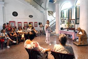 (251127) -- LA HABANA, 27 noviembre, 2025 (Xinhua) -- Imagen del 26 de noviembre de 2025 de una estudiante de idioma chino de la Facultad de Lenguas Extranjeras de la Universidad de La Habana recitando una poesía durante la firma de un convenio de colaboración realizado en el marco de un festival de poesía china, en La Habana, capital de Cuba. El Barrio Chino de La Habana y la Facultad de Lenguas Extranjeras de la Universidad de La Habana firmaron el miércoles un convenio de colaboración académica y cultural con el propósito de promover el estudio de la lengua y la cultura del país asiático en Cuba. (Xinhua/Joaquín Hernández) (jh) (rtg) (ra) (ce)