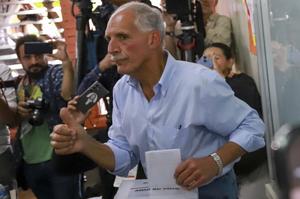 (251130) -- TEGUCIGALPA, 30 noviembre, 2025 (Xinhua) -- El candidato a la Presidencia de Honduras por el Partido Nacional, Nasry Asfura, emite su voto en un colegio electoral durante las elecciones presidenciales, en Tegucigalpa, Honduras, el 30 de noviembre de 2025. Más de seis millones de hondureños están convocados a las urnas para elegir a un nuevo presidente y sus tres designados presidenciales, 298 alcaldes, 128 diputados al Congreso Nacional y 20 representantes del Parlamento Centroamericano, entre otros cargos. (Xinhua/Rafael Ochoa) (ro) (rtg) (da)
