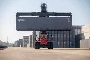 (251130) -- VIENTIAN, 30 noviembre, 2025 (Xinhua) -- Imagen del 29 de noviembre de 2025 de trabajadores realizando operaciones de elevación de contenedores, en la Estación Sur de Vientián en el Ferrocarril China-Laos, en Vientián, capital de Laos. Un tren contenedor cargando 1.000 toneladas de almidón de yuca partió desde la Estación Sur de Vientián en el Ferrocarril China-Laos el sábado, y se espera que llegue a Zhengzhou, la capital de la provincia de Henan, en el centro de China, en 80 horas, marcando la primera vez que se exporta almidón de yuca de Laos a China a través de un envío de tren completo. (Xinhua/Kaikeo Saiyasane) (rtg) (ah)
