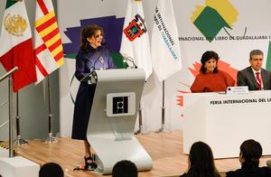 (251130) -- JALISCO, 30 noviembre, 2025 (Xinhua) -- Imagen del 29 de noviembre de 2025 de la rectora de la Universidad de Guadalajara, Karla Planter, hablando durante la inauguración de la 39ª edición de la Feria Internacional del Libro (FIL) de Guadalajara, en la ciudad de Guadalajara, estado de Jalisco, México. La FIL de Guadalajara inició el sábado sus actividades en México con la entrega del Premio FIL de Literatura en Lenguas Romances 2025 al escritor franco-libanés Amin Maalouf, reconocido por ser una de las voces más representativas de la literatura francesa contemporánea. (Xinhua/Diana Márquez) (fc) (rtg) (da)