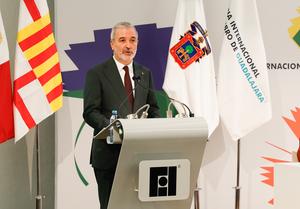 (251130) -- JALISCO, 30 noviembre, 2025 (Xinhua) -- Imagen del 29 de noviembre de 2025 del alcalde de Barcelona, Jaume Collboni, hablando durante la inauguraciónde la 39ª edición de la Feria Internacional del Libro (FIL) de Guadalajara, en la ciudad de Guadalajara, estado de Jalisco, México. La FIL de Guadalajara inició el sábado sus actividades en México con la entrega del Premio FIL de Literatura en Lenguas Romances 2025 al escritor franco-libanés Amin Maalouf, reconocido por ser una de las voces más representativas de la literatura francesa contemporánea. (Xinhua/Diana Márquez) (fc) (rtg) (da)