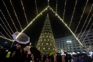 (251130) -- BUCAREST, 30 noviembre, 2025 (Xinhua) -- Imagen del 29 de noviembre de 2025 de personas visitando el Mercado Navideño de Bucarest en la Plaza de la Constitución, en Bucarest, Rumanía. La apertura del Mercado Navideño marca el inicio de la tradicional temporada festiva de invierno en Rumanía. (Xinhua/Cristian Cristel) (oa) (da)