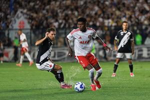 (251129) -- RIO DE JANEIRO, 29 noviembre, 2025 (Xinhua) -- Imagen del 28 de noviembre de 2025 del jugador Nuno Moreira (i), de Vasco da Gama, disputando el balón con Vitao (d), de Internacional, durante el partido correspondiente a la jornada 36 del Campeonato Brasileño Serie A celebrado en el Estadio Sao Januario, en Río de Janeiro, Brasil. (Xinhua/Claudia Martini) (cm) (rtg) (da)