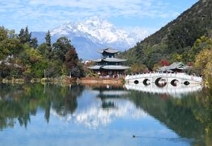 (251129) -- LIJIANG, 29 noviembre, 2025 (Xinhua) -- Imagen del 28 de noviembre de 2025 tomada desde el parque Heilongtan de una vista de la Montaña Nevada Yulong, en Lijiang, en la provincia de Yunnan, en el suroeste de China. (Xinhua/Zhao Qingzu) (oa) (da)