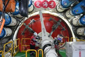 (251128) -- ZHOUSHAN, 28 noviembre, 2025 (Xinhua) -- Un técnico verifica el funcionamiento dentro de la tuneladora "Dinghai", en Zhoushan, en la provincia de Zhejiang, en el este de China, el 28 de noviembre de 2025. La tuneladora "Dinghai", de desarrollo propio de China, superó el viernes un kilometraje de excavación de 5.000 metros en el túnel submarino de Jintang entre las ciudades de Ningbo y Zhoushan, en la provincia de Zhejiang, en el este de China. (Xinhua/Huang Zongzhi) (jg) (da) (vf)
