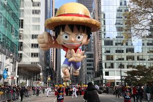 (251128) -- NUEVA YORK, 28 noviembre, 2025 (Xinhua) -- Imagen del 27 de noviembre de 2025 del globo de Monkey D. Luffy visto durante el Desfile del Día de Acción de Gracias de Macy's 2025, en Nueva York, Estados Unidos. El tradicional Desfile del Día de Acción de Gracias de Macy's llevó el espíritu festivo a la Ciudad de Nueva York el jueves por la mañana, con globos gigantes con forma de personajes flotando sobre Manhattan en uno de los eventos festivos más vistos de Estados Unidos. (Xinhua/Zhang Fengguo) (oa) (ra) (ce)