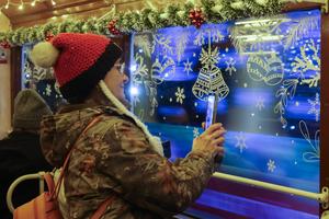 (251129) -- BUDAPEST, 29 noviembre, 2025 (Xinhua) -- Imagen del 28 de noviembre de 2025 de una pasajera tomando fotografías en un tranvía navideño decorado, en Budapest, Hungría. (Xinhua/Attila Volgyi) (jg) (da)