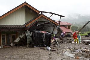 (251128) -- YAKARTA, 28 noviembre, 2025 (Xinhua) -- Rescatistas trabajan cerca del área dañada tras las inundaciones y deslizamientos de tierra, en la regencia de Agam, Sumatra Occidental, Indonesia, el 28 de noviembre de 2025. El número de víctimas mortales por las inundaciones y los deslizamientos de tierra que han azotado las provincias indonesias de Aceh, Sumatra Septentrional y Sumatra Occidental ascendió a 174, y 79 personas siguen desaparecidas y otras 12 resultaron heridas, informó el viernes la Agencia Nacional de Gestión de Desastres. (Xinhua/Andri Mardiansyah) (jg) (da)