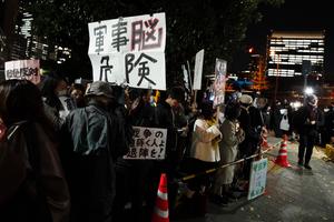 (251129) -- TOKIO, 29 noviembre, 2025 (Xinhua) -- Imagen del 28 de noviembre de 2025 de personas asistiendo a una protesta frente a la residencia oficial de la primera ministra japonesa, en Tokio, Japón. En respuesta a las recientes declaraciones erróneas de la primera ministra japonesa, Sanae Takaichi, sobre Taiwan de China y a su continua falta de arrepentimiento, ciudadanos japoneses realizaron otra protesta masiva en Tokio el viernes por la noche, exigiendo que Takaichi se retracte de sus afirmaciones. (Xinhua/Jia Haocheng) (jg) (da)