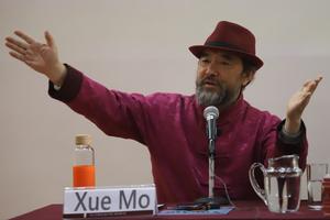 (251129) -- CIUDAD DE MEXICO, 29 noviembre, 2025 -- Imagen del 28 de noviembre de 2025 del escritor chino, Xue Mo, hablando durante una conferencia en el Colegio de México, en la Ciudad de México, capital de México. Recuperar los valores ancestrales como base para fortalecer la convivencia entre comunidades del mundo y avanzar hacia un destino común es indispensable para que las sociedades coexistan y prosperen, consideró Xue Mo. (Xinhua/Daniel Augusto) (fc) (oa) (da)