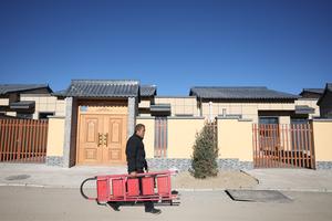 (251202) — YUZHONG, 2 diciembre, 2025 (Xinhua) — Imagen del 1 de diciembre de 2025 del aldeano Wang Lijun caminando frente a su nueva casa, en un sitio de reasentamiento para hogares afectados por las inundaciones, en la aldea de Jiuzhuanggou del poblado de Mapo, en el distrito de Yuzhong, en la provincia de Gansu, en el noroeste de China. El distrito de Yuzhong, que se encuentra bajo la jurisdicción de la capital provincial Lanzhou, fue afectado por torrentes de montaña provocados por lluvias torrenciales de agosto. De acuerdo con un plan de reconstrucción elaborado por el gobierno local, seis sitios de reasentamiento para 325 familias se encuentran en construcción sin contratiempos. (Xinhua/Chen Bin) (jg) (ra) (ce)