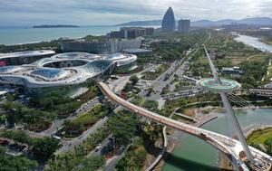 (251201) -- SANYA, 1 diciembre, 2025 (Xinhua) -- Vista aérea tomada con un dron el 30 de noviembre de 2025 de un centro comercial libre de impuestos, en Sanya, en la provincia de Hainan, en el sur de China. La Aduana de Haikou supervisó un total de 2,38 billones de yuanes (unos 337 millones de dólares estadounidenses) en ventas libres de impuestos durante el primer mes (del 1 al 30 de noviembre) de la implementación de la política ampliada de ventas libres de impuestos en el extranjero, un aumento del 27,1 por ciento interanual. (Xinhua/Guo Cheng) (rtg) (ah) (vf)