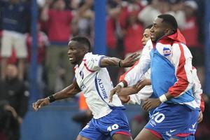 (251201) -- MONTEVIDEO, 1 diciembre, 2025 (Xinhua) -- Imagen del 30 de noviembre de 2025 del jugador Christian Ebere (i), de Nacional, festejando su anotación, durante el partido correspondiente a la final de la Liga AUF Uruguay, ante Peñarol, celebrado en el estadio Gran Parque Central, en Montevideo, capital de Uruguay. (Xinhua/Nicolás Celaya) (nc) (oa) (ah) (vf)