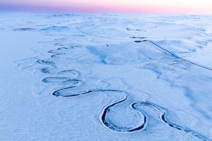 (251203) -- HULUN BUIR, 3 diciembre, 2025 (Xinhua) -- Vista aérea tomada con un dron el 3 de diciembre de 2025 del río Morigele en la pradera cubierta de nieve de la bandera de Chenbarhu, en Hulun Buir, en la región autónoma de Mongolia Interior, en el norte de China. (Xinhua/Ma Jinrui) (ah) (ra) (vf)