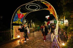 (251203) -- BOGOTA, 3 diciembre, 2025 (Xinhua) -- Imagen del 2 de diciembre de 2025 de personas visitando la exhibición Luces del Mundo en el cerro de Monserrate, en Bogotá, capital de Colombia. Con una amalgama de culturas y una iluminación dedicada a 11 países del mundo, el cerro de Monserrate de Bogotá recibe la temporada navideña fortaleciendo las rutas turísticas para el fin de año en la capital colombiana. (Xinhua/Andrés Moreno) (am) (ah) (ra) (ce)