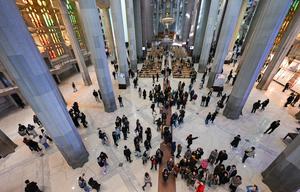 (251202) -- BARCELONA, 2 diciembre, 2025 (Xinhua) -- Imagen del 1 de diciembre de 2025 de turistas visitando la basílica de la Sagrada Familia, en Barcelona, España. La basílica de la Sagrada Familia, obra maestra del diseñador de renombre mundial, Antoni Gaudí, sigue en construcción desde que se colocó la primera piedra en 1882. (Xinhua/Cheng Min) (oa) (ah) (vf)