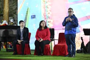 (251203) -- CARACAS, 3 diciembre, 2025 (Xinhua) -- Imagen del 2 de diciembre de 2025 del ministro de Obras Públicas venezolano, Juan José Ramírez (d), hablando durante la inauguración de la Plaza de la Amistad China-Venezuela, en Caracas, Venezuela. La Plaza de la Amistad China-Venezuela fue inaugurada el martes en la avenida Boyacá de la Cota Mil, de Caracas, como un espacio público multifuncional que combina áreas deportivas, parques biosaludables y locales para emprendedores. (Xinhua/Li Muzi) (ah) (ra) (ce)