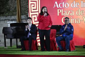 (251203) -- CARACAS, 3 diciembre, 2025 (Xinhua) -- Imagen del 2 de diciembre de 2025 de la alcaldesa de Caracas, almiranta en jefa Carmen Meléndez (c), hablando durante la inauguración de la Plaza de la Amistad China-Venezuela, en Caracas, Venezuela. La Plaza de la Amistad China-Venezuela fue inaugurada el martes en la avenida Boyacá de la Cota Mil, de Caracas, como un espacio público multifuncional que combina áreas deportivas, parques biosaludables y locales para emprendedores. (Xinhua/Li Muzi) (ah) (ra) (ce)