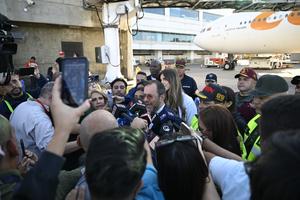 (251203) -- LA GUAIRA, 3 diciembre, 2025 (Xinhua) -- El canciller de Venezuela, Yván Gil (c), habla con representantes de los medios de comunicación, en el Aeropuerto Internacional Simón Bolívar, en Maiquetía, estado de La Guaira, Venezuela, el 3 de diciembre de 2025. Gil recibió el miércoles en el céntrico estado La Guaira a 304 migrantes venezolanos que regresaron al país en un vuelo procedente de México. (Xinhua/Li Muzi) (jg) (da) (ce)