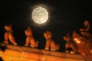 (251204) -- BEIJING, 4 diciembre, 2025 (Xinhua) -- La luna llena es vista en el Parque de las Ruinas del Palacio Ming, en Nanjing, en la provincia de Jiangsu, en el este de China, el 4 de diciembre de 2025. La segunda luna llena más grande del año a los ojos de los observadores lunares aparecerá el viernes por la mañana, pero el mejor momento para verla será el jueves por la noche. (Xinhua/Su Yang) (da) (ra) (vf)