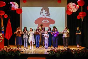 (251204) -- QUITO, 4 diciembre, 2025 (Xinhua) -- Imagen del 2 de diciembre de 2025 de estudiantes interpretando una canción en chino durante una ceremonia por el 15º aniversario del Instituto Confucio de la Universidad San Francisco de Quito (USFQ), en la ciudad de Quito, capital de Ecuador. El Instituto Confucio de la USFQ celebró el martes su 15º aniversario con una colorida ceremonia marcada por presentaciones musicales y las tradicionales danzas del dragón y del león, símbolos de prosperidad y buena fortuna en la cultura china. (Xinhua/Ricardo Landeta) (rl) (da) (ra) (vf)