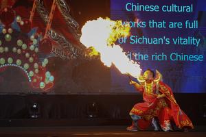 (251207) -- SIEM REAP, 7 diciembre, 2025 (Xinhua) -- Imagen del 6 de diciembre de 2025 de un artista chino soplando la llama durante un espectáculo de música y cultura China-Camboya, en la provincia de Siem Reap, Camboya. El espectáculo fue una de las actividades conjuntas para promover el Año del Turismo Camboya-China 2025. (Xinhua/Sao Khuth) (oa) (ah)