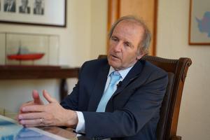 (251205) -- PUNTA ARENAS, 5 diciembre, 2025 (Xinhua) -- Imagen del 28 de noviembre de 2025 del director nacional del Instituto Antártico Chileno (Inach), Gino Casassa Rogazinski, hablando durante una entrevista con la Agencia de Noticias Xinhua, en Punta Arenas, Chile. El Inach tiene "excelentes" relaciones con China, un reflejo de que los vínculos diplomáticos entre ambos países están "plenamente" activos en diversos ámbitos, incluida la ciencia, y se busca profundizarlas, destacó Casassa Rogazinski. (Xinhua/Yubo Zhu) (da) (ra) (vf)