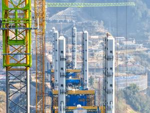 (251207) -- CHONGQING, 7 diciembre, 2025 (Xinhua) -- Imagen tomada con un dron el 7 de diciembre de 2025 del gran puente Renhe en construcción a lo largo del ferrocarril de alta velocidad Xi'an-Chongqing, en Chongqing, en el suroeste de China. La construcción de las columnas de la torre del gran puente Renhe finalizó el domingo, con casi un 70 por ciento de avance en la construcción del puente. Ubicado en el distrito de Chengkou de Chongqing, este puente de 1.180,52 metros de longitud es un proyecto clave del ferrocarril de alta velocidad Xi'an-Chongqing. (Xinhua/Tang Yi) (rtg) (da)