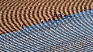 (251206) -- BEIJING, 6 diciembre, 2025 (Xinhua) -- Vista aérea tomada con un dron el 6 de diciembre de 2025 de agricultores cubriendo plántulas de hortalizas con una película aislante, en la ciudad de Linyi, en la provincia de Shandong, en el este de China. A medida que se acerca el término solar de la Gran Nevada, también conocido como "Da Xue" en chino, los agricultores están atareados con la producción agrícola en todo el país. (Xinhua/Wu Jiquan) (jg) (da)