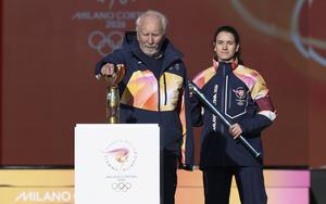(251206) -- ROMA, 6 diciembre, 2025 (Xinhua) -- El exatleta italiano Giancarlo Peris (i) sostiene la linterna que contiene la llama olímpica durante la ceremonia que marca el inicio oficial del relevo de la antorcha para los Juegos Olímpicos de Invierno de Milán-Cortina 2026, en Roma, Italia, el 6 de diciembre de 2025. (Xinhua/Li Jing) (jg) (da)