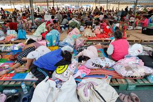 (251208) — BURIRAM, 8 diciembre, 2025 (Xinhua) — Civiles se reúnen en un centro de evacuación, en la provincia de Buriram, Tailandia, el 8 de diciembre de 2025. Hasta las 06:00 hora local del lunes, aproximadamente el 70 por ciento de los civiles en cuatro provincias a lo largo de la frontera entre Tailandia y Camboya ya habían sido evacuados, informó la Segunda Región del Ejército de Tailandia en un comunicado. (Xinhua) (rtg) (ah) (vf)