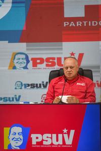 (251208) -- MIRANDA, 8 diciembre, 2025 (Xinhua) -- El secretario general del Partido Socialista Unido de Venezuela (PSUV), Diosdado Cabello, asiste a una conferencia de prensa, en el estado de Miranda, Venezuela, el 8 de diciembre de 2025. Cabello agradeció el lunes el respaldo internacional al país sudamericano ante la amenaza militar de Estados Unidos. (Xinhua/Marcos Salgado) (ms) (rtg) (ah) (vf)
