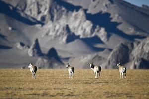 (251211) -- RUOQIANG, 11 diciembre, 2025 (Xinhua) -- Imagen del 7 de diciembre de 2025 de antílopes tibetanos hembras alimentándose en la Reserva Natural Nacional de las Montañas de Altun, en la región autónoma de la etnia uygur de Xinjiang, en el noroeste de China. El invierno es la temporada de apareamiento de los antílopes tibetanos, que gozan de protección estatal de primera clase en China y se encuentran principalmente en la región autónoma de Xizang, la provincia de Qinghai y la región autónoma de la etnia uygur de Xinjiang. (Xinhua/Xin Yuewei) (jg) (ah) (vf)