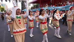 (251214) -- LA PAZ, 14 diciembre, 2025 (Xinhua) -- Imagen del 13 de diciembre de 2025 de personas disfrazadas de galletas de jengibre participando en el desfile navideño de la ciudad de La Paz, Bolivia. (Xinhua/Javier Mamani) (jm) (rtg) (ah)