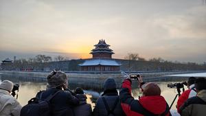 (251213) -- BEIJING, 13 diciembre, 2025 (Xinhua) -- Imagen del 13 de diciembre de 2025 del paisaje nevado al amanecer cerca de una torreta del Museo del Palacio, en Beijing, China. Beijing atestiguó el viernes su primera nevada significativa de esta temporada invernal. (Xinhua/Xing Guangli) (jg) (da)