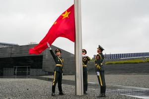 (251213) — NANJING, 13 diciembre, 2025 (Xinhua) — Una ceremonia de izamiento de bandera y una ceremonia para arriar la bandera nacional de China a media asta se llevan a cabo en el Salón Conmemorativo de las Víctimas de la Masacre de Nanjing cometida por los Invasores Japoneses, en Nanjing, capital de la provincia de Jiangsu, en el este de China, el 13 de diciembre de 2025. El sábado se realiza la 12 ceremonia conmemorativa nacional para las víctimas de la Masacre de Nanjing. (Xinhua/Li Bo) (jg) (da)