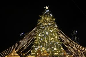 (251213) -- TIFLIS, 13 diciembre, 2025 (Xinhua) -- Imagen del 12 de diciembre de 2025 del árbol principal iluminado de Año Nuevo de Georgia visto en la Plaza de la Primera República, en Tiflis, Georgia. (Xinhua/Gobierno de la Ciudad de Tiflis) (jg) (da)
