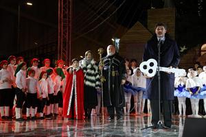 (251213) -- TIFLIS, 13 diciembre, 2025 (Xinhua) -- Imagen del 12 de diciembre de 2025 del alcalde de Tiflis, Kakha Kaladze (d), sosteniendo una llave simbólica para el lanzamiento de las actividades de celebración del Año Nuevo en una ceremonia de encendido del árbol principal de Año Nuevo de Georgia en la Plaza de la Primera República, en Tiflis, Georgia. (Xinhua/Gobierno de la Ciudad de Tiflis) (jg) (da)