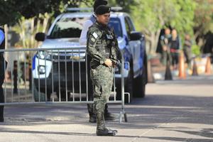 (251212) -- TEGUCIGALPA, 12 diciembre, 2025 (Xinhua) -- Un elemento del Ejército hondureño vigila las instalaciones del Centro de Divulgación de Resultados del Consejo Nacional Electoral, en Tegucigalpa, Honduras, el 12 de diciembre 2025. (Xinhua/Rafael Ochoa) (ro) (jg) (da) (vf)