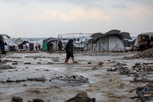 (251212) -- GAZA, 12 diciembre, 2025 (Xinhua) -- Palestinos caminan por una calle inundada tras la lluvia, en la Ciudad de Gaza, el 12 de diciembre de 2025. Al menos 14 personas murieron en la Franja de Gaza en las últimas 24 horas debido al derrumbe de viviendas y a la inundación de tiendas de campaña que albergaban a familias desplazadas durante una fuerte tormenta invernal, informó el viernes la Defensa Civil de Gaza. (Xinhua/Rizek Abdeljawad) (oa) (ra) (vf)