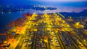 (251215) -- BEIJING, 15 diciembre, 2025 (Xinhua) -- Vista aérea tomada con un dron el 15 de diciembre de 2025 de un muelle de contenedores en el puerto de Tangshan, en Tangshan, en la provincia de Hebei, en el norte de China. La economía de China mantuvo un impulso estable en noviembre, creando condiciones favorables para alcanzar el objetivo de crecimiento anual, según revelan los últimos indicadores económicos publicados el lunes. En noviembre, la producción industrial de valor agregado del país se expandió un 4,8 por ciento interanual. En los primeros 11 meses, la producción industrial aumentó un 6 por ciento. (Xinhua/Liu Mancang) (rtg) (ah) (vf)