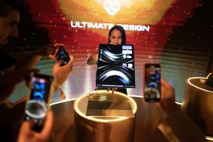 (251215) -- BUENOS AIRES, 15 diciembre, 2025 (Xinhua) -- Una promotora muestra la computadora portátil plegable Matebook Fold durante el evento de lanzamiento de productos de la compañía china de tecnología Huawei, en la ciudad de Buenos Aires, Argentina, el 15 de diciembre de 2025. La compañía china de tecnología Huawei presentó el lunes en Argentina diez nuevos productos de consumo, en una apuesta por ampliar su portafolio en el mercado argentino y consolidar su posicionamiento a través de innovación, tecnología de vanguardia y una experiencia de usuario enriquecedora. (Xinhua/Martín Zabala) (mz) (vf) (dp)