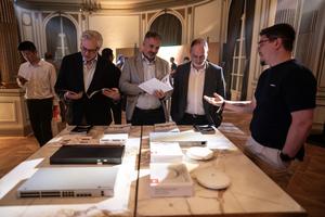 (251215) -- BUENOS AIRES, 15 diciembre, 2025 (Xinhua) -- Personas leen información sobre conectividad y redes para pequeñas y medianas empresas durante el evento de lanzamiento de productos de la compañía china de tecnología Huawei, en la ciudad de Buenos Aires, Argentina, el 15 de diciembre de 2025. La compañía china de tecnología Huawei presentó el lunes en Argentina diez nuevos productos de consumo, en una apuesta por ampliar su portafolio en el mercado argentino y consolidar su posicionamiento a través de innovación, tecnología de vanguardia y una experiencia de usuario enriquecedora. (Xinhua/Martín Zabala) (mz) (vf) (dp)