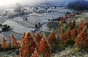(251216) -- BEIJING, 16 diciembre, 2025 (Xinhua) -- Imagen del 25 de noviembre de 2025 de un jardín de té cubierto por escarcha, en la aldea de Dashaba, en el distrito de Xianfeng, en Enshi de la provincia de Hubei, en el centro de China. (Xinhua/Li Weijun) (jg) (ra) (vf)