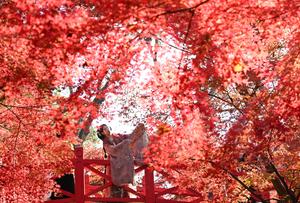(251216) -- BEIJING, 16 diciembre, 2025 (Xinhua) -- Imagen del 7 de diciembre de 2025 de una turista disfrutado de las hojas de arce en el Jardín Botánico Zhongshan, en Nanjing, en la provincia de Jiangsu, en el este de China. (Xinhua/Yang Suping) (jg) (ra) (vf)