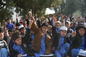 (251217) -- NANGARHAR, 17 diciembre, 2025 (Xinhua) -- Imagen del 16 de diciembre de 2025 de estudiantes tomando una clase al aire libre en una escuela improvisada sin refugios adecuados junto a un cruce de carreteras, en la provincia de Nangarhar, en el este de Afganistán. (Xinhua/Saifurahman Safi) (ah) (ra) (vf)