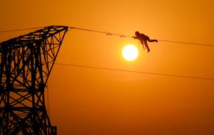 (251217) — HEFEI, 17 diciembre, 2025 (Xinhua) — Imagen tomada con un dron el 16 de diciembre de 2025 de un constructor trabajando en una línea de transmisión de energía eléctrica, en la provincia de Anhui, en el este de China. La construcción del cuerpo principal de la línea de transmisión de energía eléctrica de 500 kV que va de Xiangjian a Ludao en la provincia de Anhui, concluyó con éxito el miércoles. Con una longitud total de 136,8 kilómetros, la línea optimizará aún más la estructura de la red eléctrica de Anhui y mejorará la fiabilidad del suministro eléctrico una vez finalizada. (Xinhua/Zhou Mu) (jg) (da) (vf)