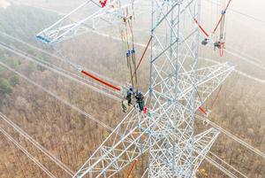 (251217) -- HEFEI, 17 diciembre, 2025 (Xinhua) -- Imagen tomada con un dron el 17 de diciembre de 2025 de constructores trabajando en una línea de transmisión de energía eléctrica, en la provincia de Anhui, en el este de China. La construcción del cuerpo principal de la línea de transmisión de energía eléctrica de 500 kV que va de Xiangjian a Ludao en la provincia de Anhui, concluyó con éxito el miércoles. Con una longitud total de 136,8 kilómetros, la línea optimizará aún más la estructura de la red eléctrica de Anhui y mejorará la fiabilidad del suministro eléctrico una vez finalizada. (Xinhua/Zheng Xianlie) (jg) (da) (vf)